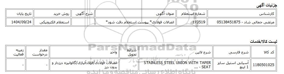 مرتضی جمالی شاد - 05138451875173519اتصالات فولادی* پیوست استعلام دقت شود*استعلام الکترونیکی1404/09/24
