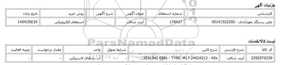 2292570239آببند شافتSEALING RING - TYPE: M17-24024212 - 40x... -آب بندهای لاستیکی--
