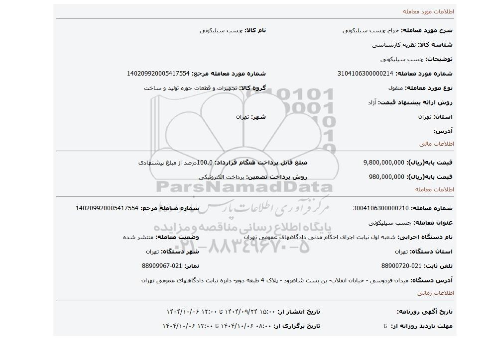 شماره معامله: 3004106300000210شماره معامله مرجع: 140209920005417554