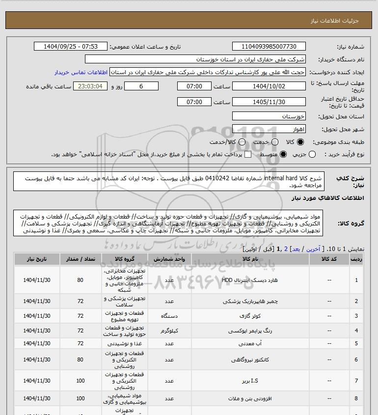 نام دستگاه خریدار:شرکت ملی حفاری ایران در استان خوزستان