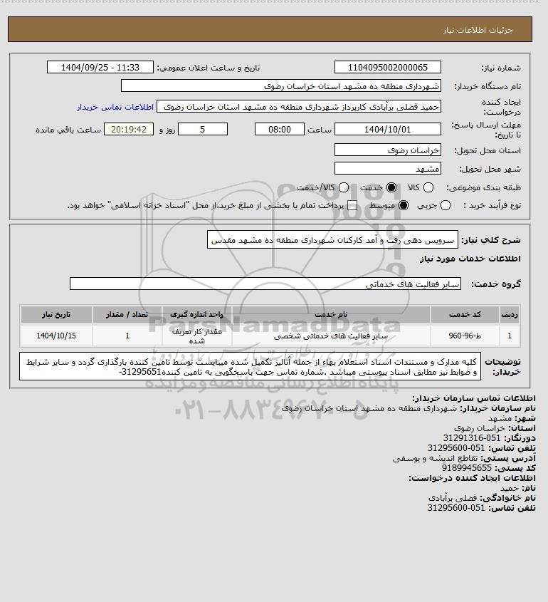 استعلام سرویس دهی رفت و آمد کارکنان شهرداری منطقه ده مشهد مقدس، سایت ستاد- استعلام روز سه شنبه بیست و پنجم آذر ماه 1404, استعلام سرویس دهی رفت و آمد کارکنان شهرداری منطقه ده مشهد مقدس، سایت ستاد