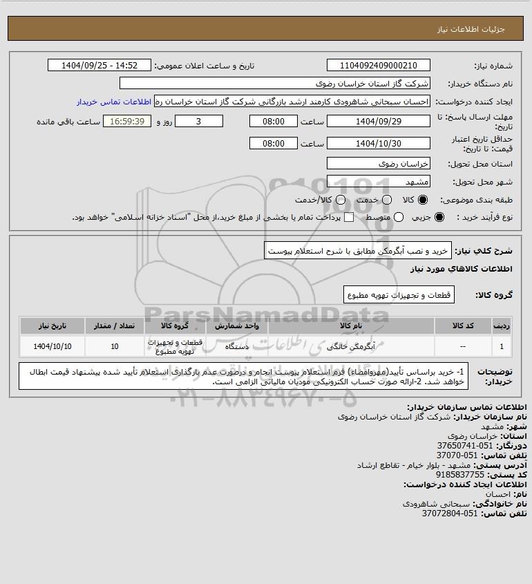 نام دستگاه خریدار:شرکت گاز استان خراسان رضوی