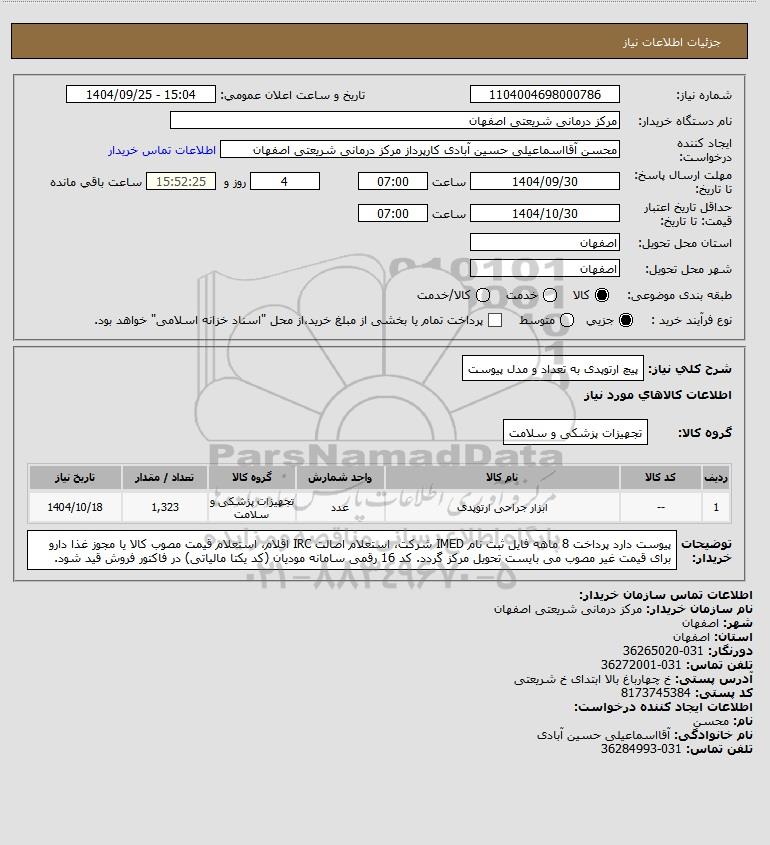 نام دستگاه خریدار:مرکز درمانی شریعتی اصفهان