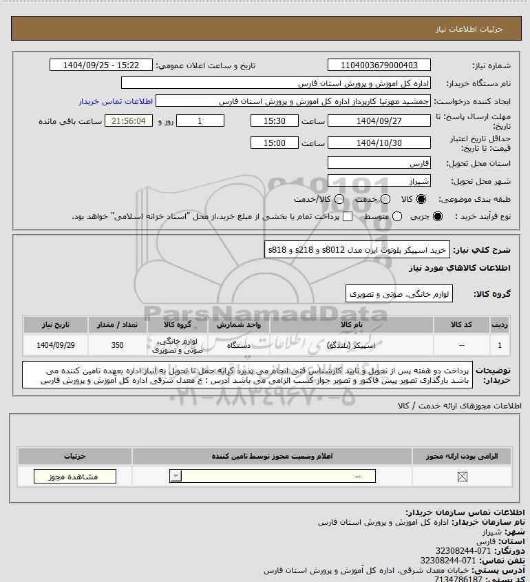 نام دستگاه خریدار:اداره کل اموزش و پرورش استان فارس