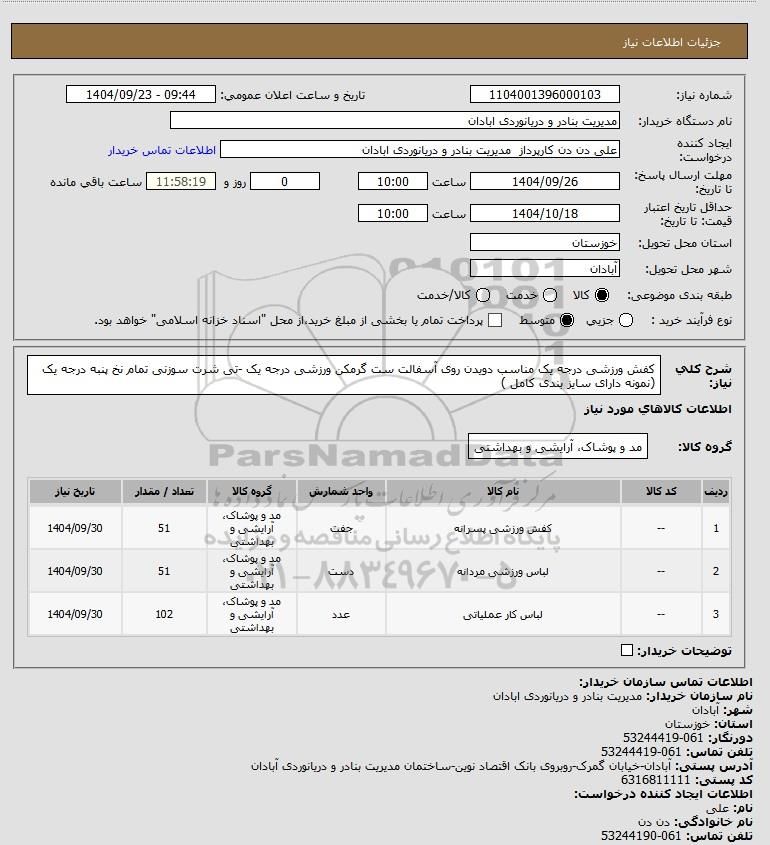 | 3 | -- | لباس کار عملیاتی | عدد | مد و پوشاک، آرایشی و بهداشتی | 102 | 1404/09/30 |