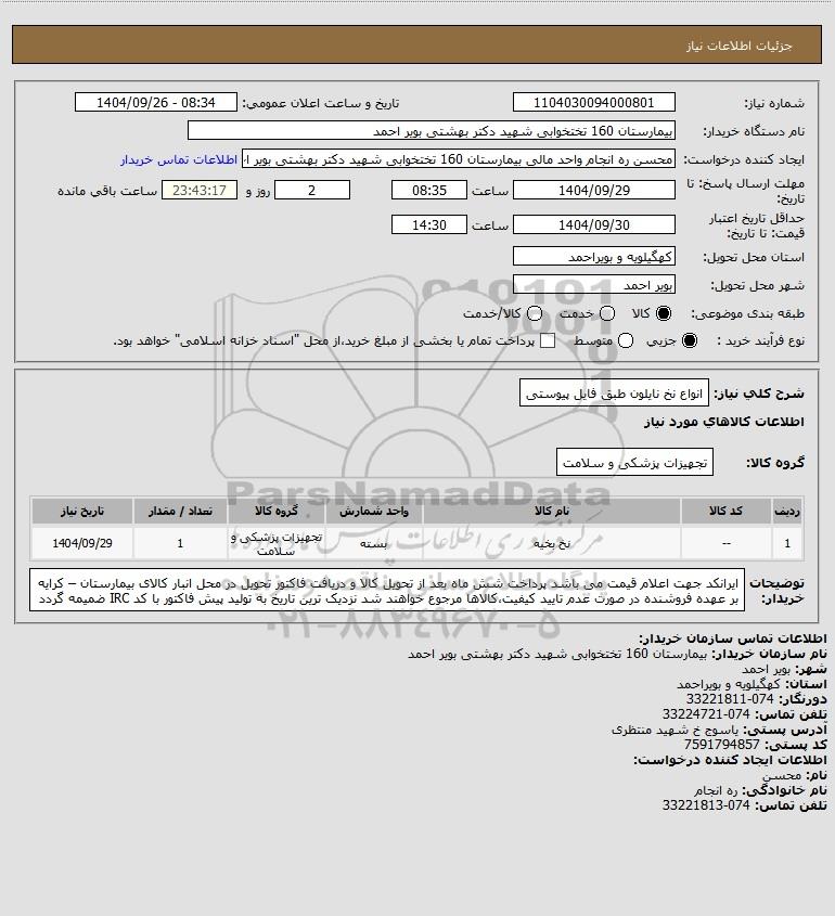 1 -- نخ بخیه بسته تجهیزات پزشکی و سلامت 1 1404/09/29