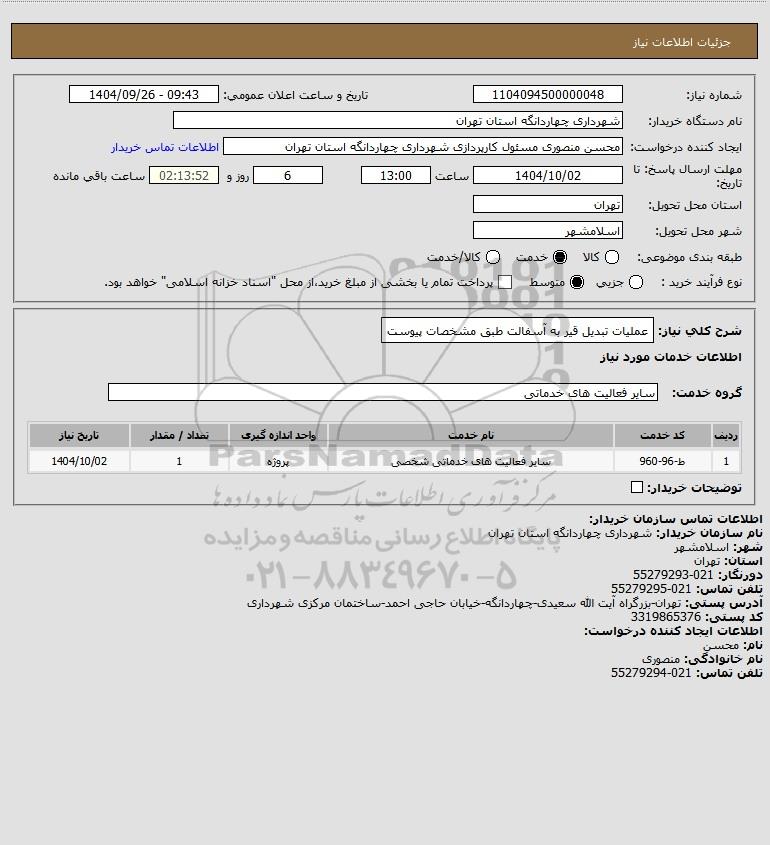 نام دستگاه خریدار:شهرداری چهاردانگه استان تهران