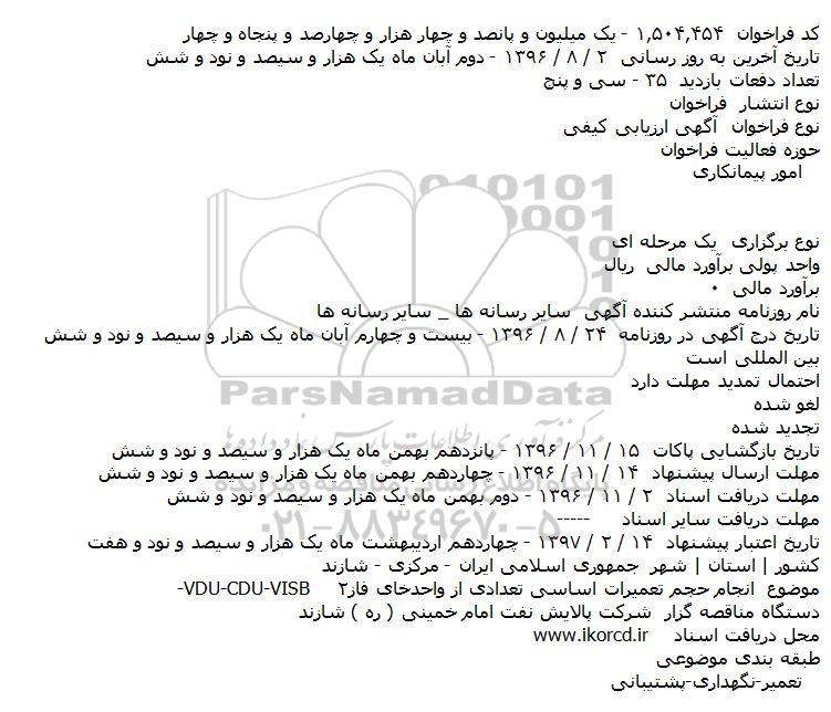 مهلت دریافت اسناد  ۲ / ۱۱ / ۱۳۹۶ - دوم بهمن ماه یک هزار و سیصد و نود و شش