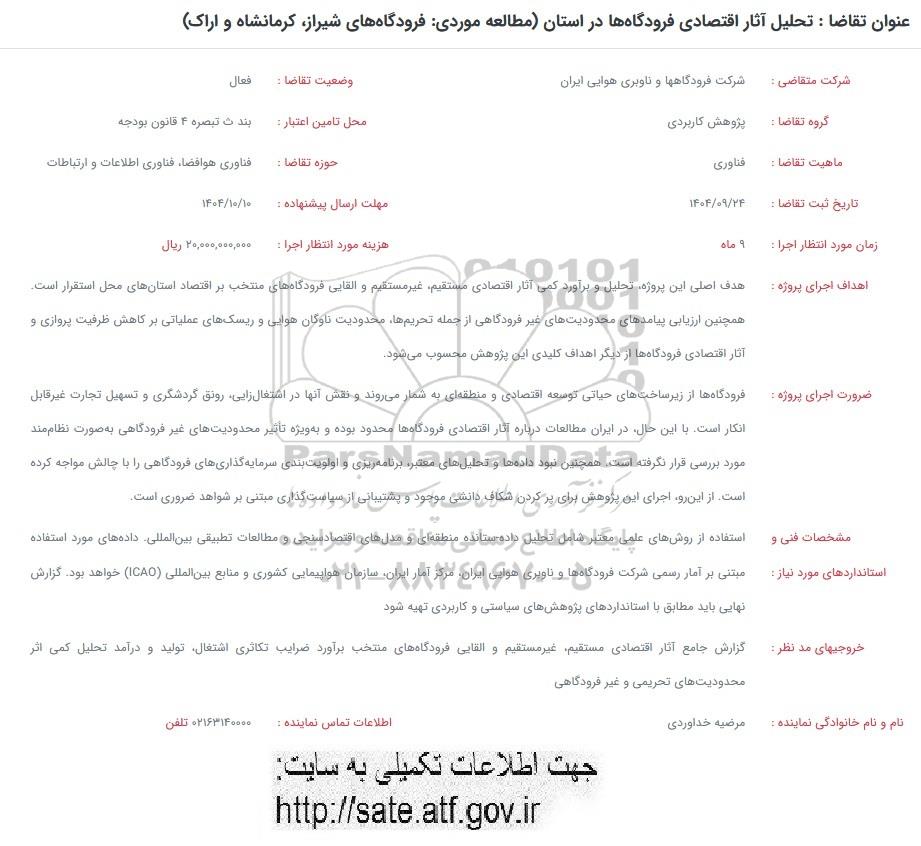 فراخوان تحلیل آثار اقتصادی فرودگاه ها در استان (مطالعه موردی: فرودگاه های شیراز ، کرمانشاه و اراک), فراخوان تحلیل آثار اقتصادی فرودگاه ها در استان (مطالعه موردی: فرودگاه های شیراز ، کرمانشاه و اراک)