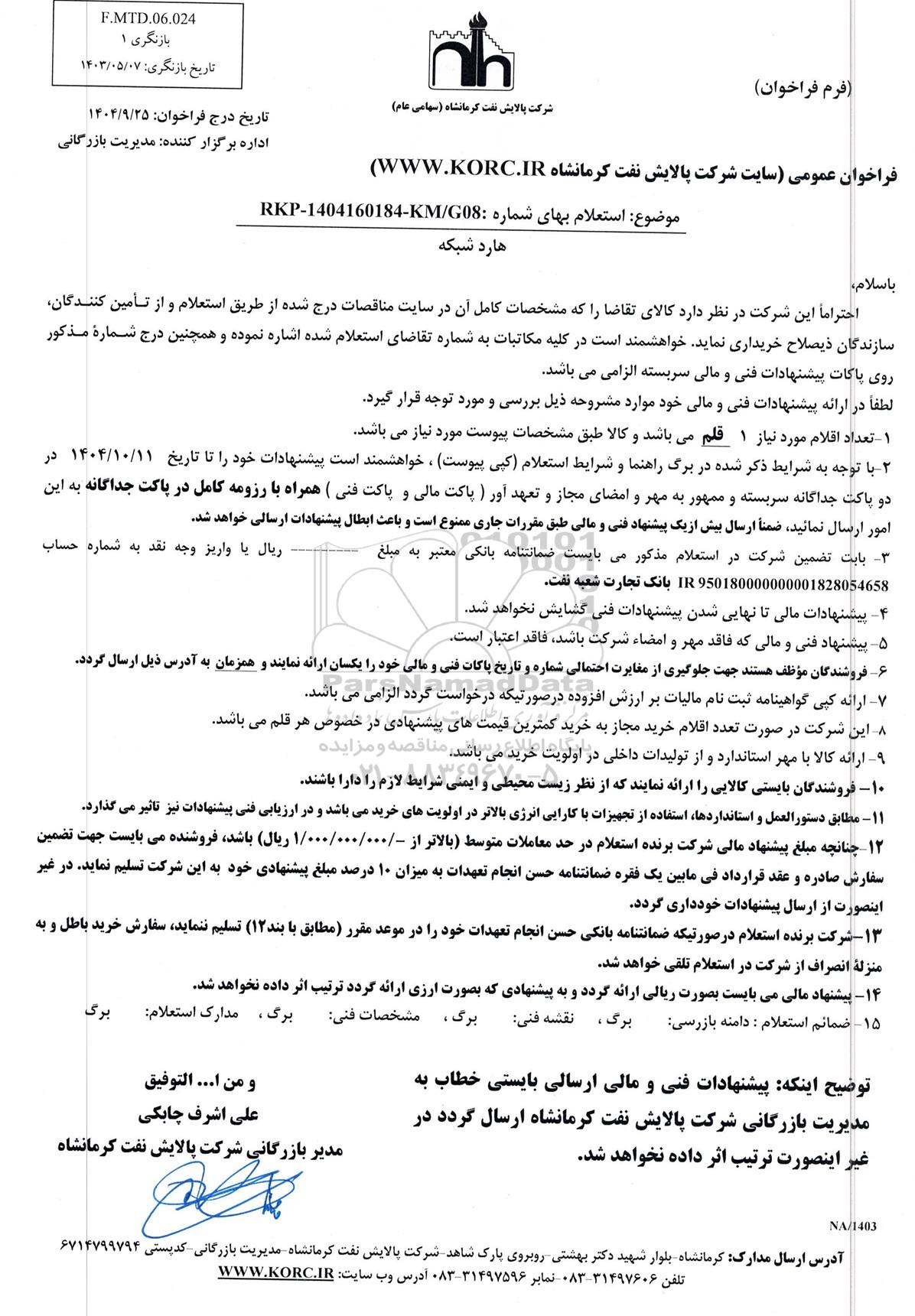 فراخوان عمومی (سایت شرکت پالایش نفت کرمانشاه WWW.KORC.IR) ؟