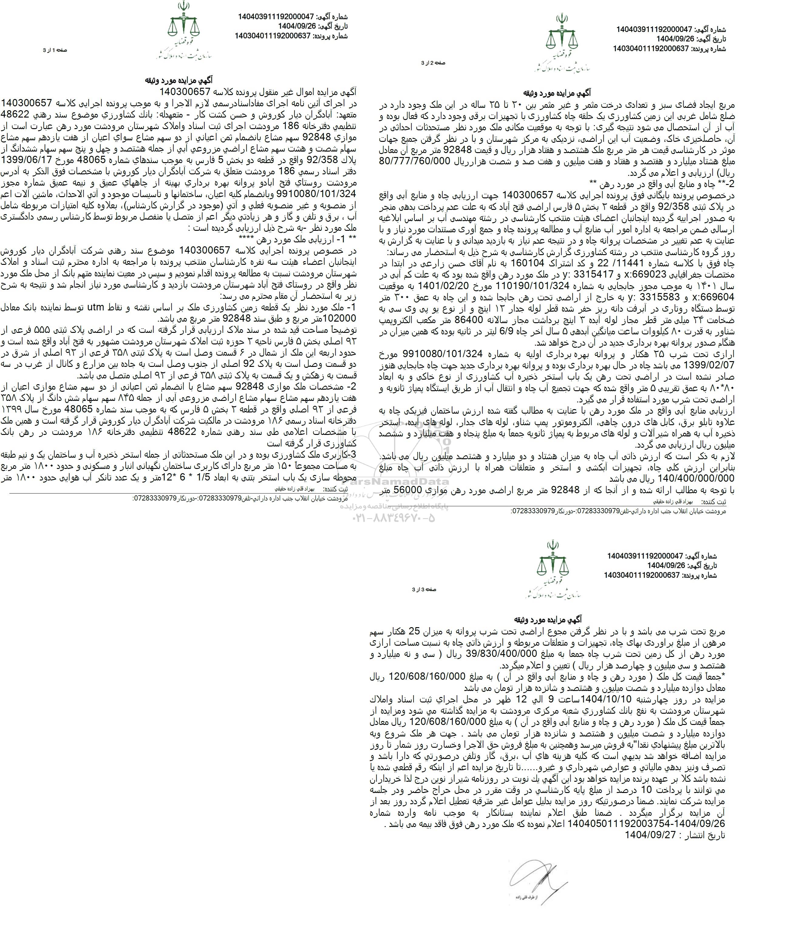 مزایده موازی 92848 سهم مشاع از اراضی مزروعی آبی, مزایده موازی 92848 سهم مشاع از اراضی مزروعی آبی