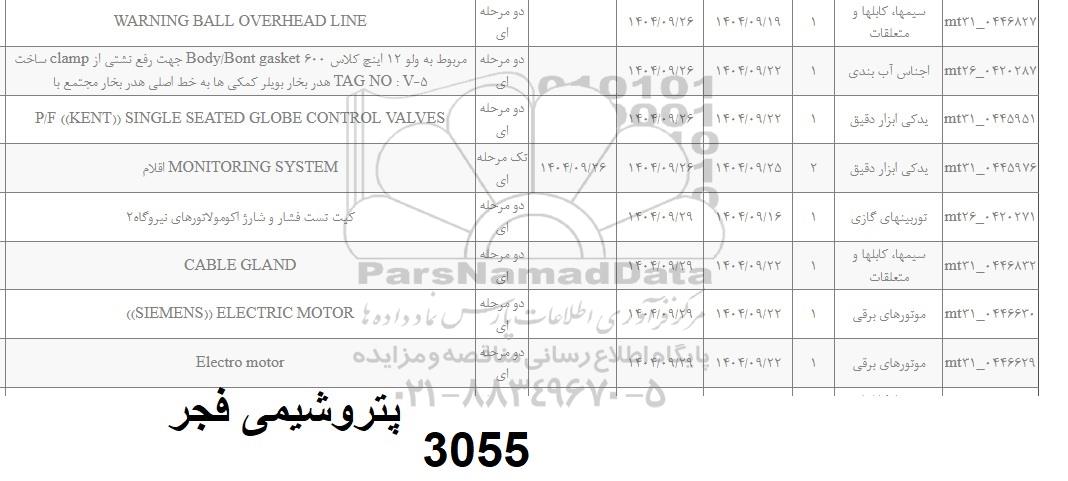 مناقصات و مناقصه شیرآلات نفتی و پالایشگاهی, مناقصه و مناقصات مخازن نفتی و اسکله های نفتی, مناقصات و مناقصه نیروگاه ها, مناقصه و مناقصات گیت ولو, مناقصات و مناقصه چاه های نفتی, مناقصه و مناقصات شیرهای کنترلی پالایشگاهی, مناقصات و مناقصه لوله و اتصالات نفتی, مناقصه و مناقصات برچ تقطیر, مناقصات و مناقصه تیوب, مناقصه و مناقصات گسکت, مناقصات و مناقصه کنترل ولو, مناقصه و مناقصات ابزار دقیق, مناقصات و مناقصه کمپرسور, مناقصه و مناقصات کنتور گاز, مناقصات و مناقصه فیلترهای نفتی, مناقصه و مناقصات کندانسور, مناقصات و مناقصه رگولاتور,