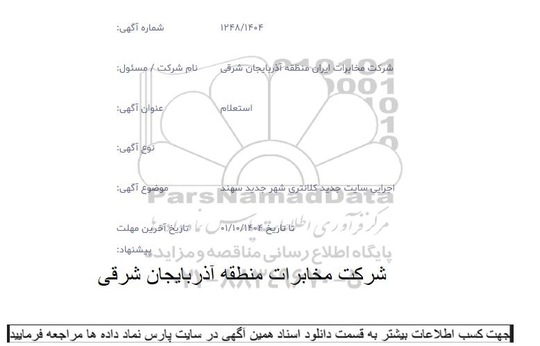 برای شرکت در مناقصه حتما از تصویر آگهی در سایت پارس نماد داده ها استفاده نمایید