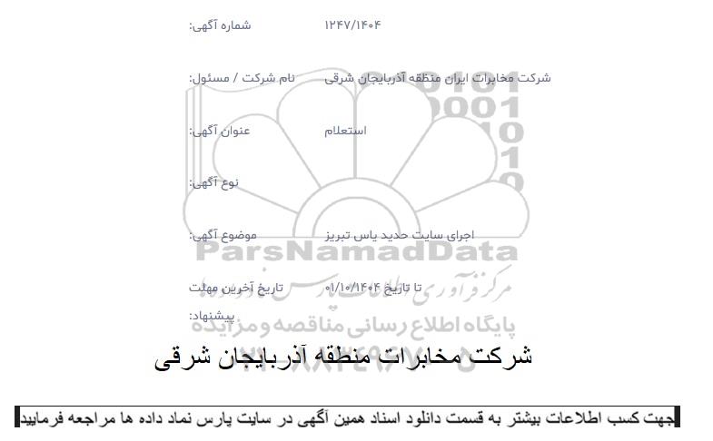 استعلام اجرای سایت جدید یاس تبریز , استعلام اجرای سایت جدید یاس تبریز