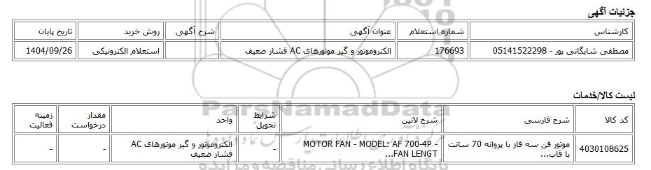 مصطفی شایگانی پور - 05141522298176693الکتروموتور و گیر موتورهای AC فشار ضعیفاستعلام الکترونیکی1404/09/26
