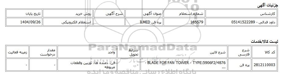 | داود فدائی - 05141522289 | 165579 | پره فن ILMED | استعلام الکترونیکی | 1404/09/26 |