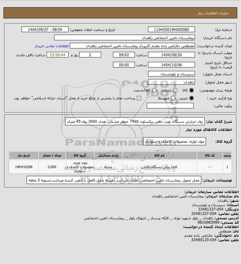 نام سازمان خریدار: بیمارستان تامین اجتماعی زاهدان