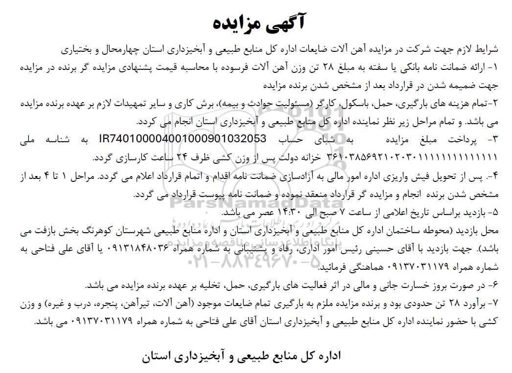شرایط لازم جهت شرکت در مزایده آهن آلات ضایعات اداره کل منابع طبیعی و آبخیزداری استان چهارمحال و بختیاری