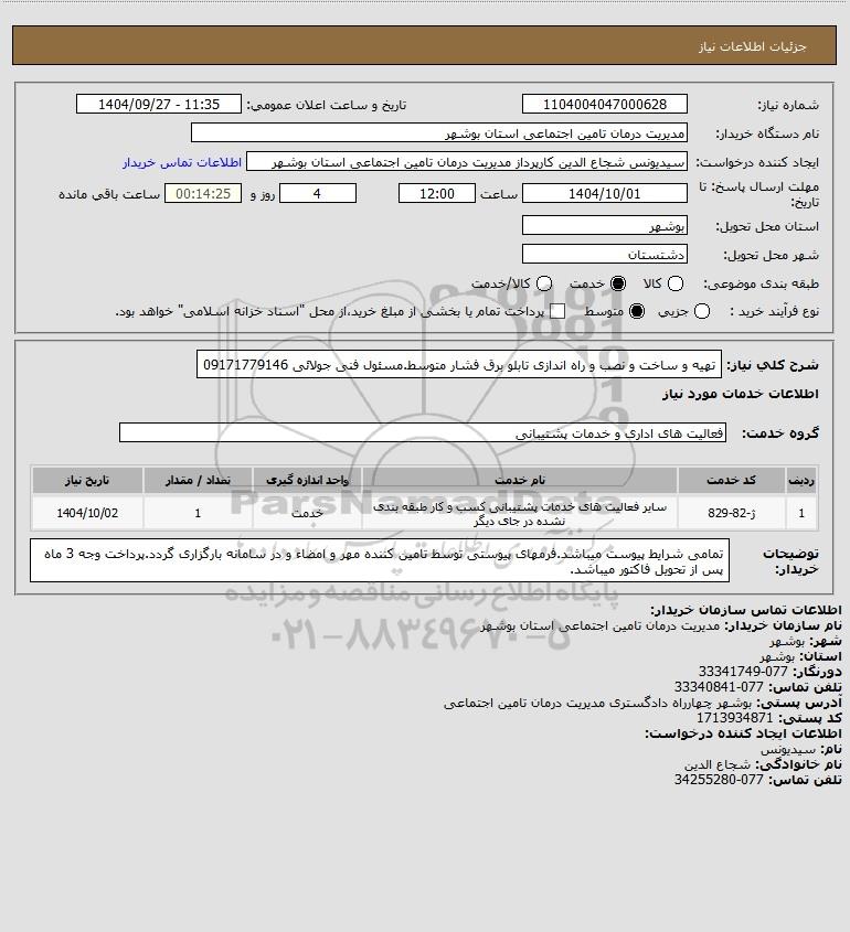 نام دستگاه خریدار:مدیریت درمان تامین اجتماعی استان بوشهر