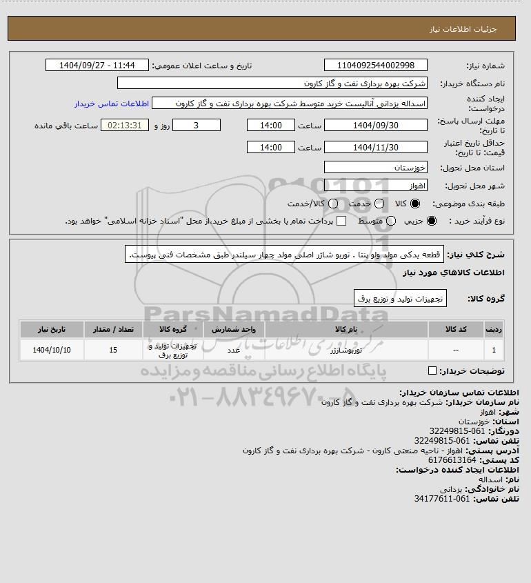 نام دستگاه خریدار:شرکت بهره برداری نفت و گاز کارون