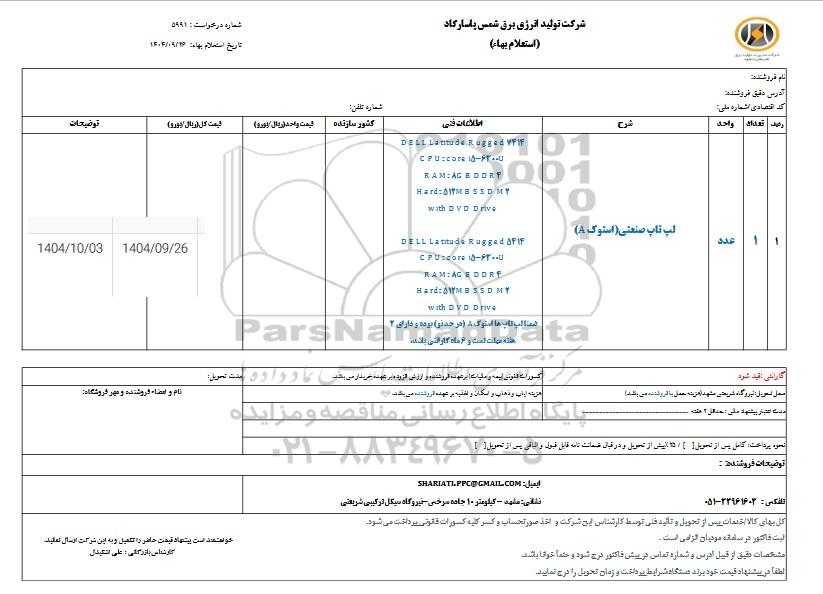 استعلام لپ تاپ صنعتی (استوک A), استعلام لپ تاپ صنعتی (استوک A)