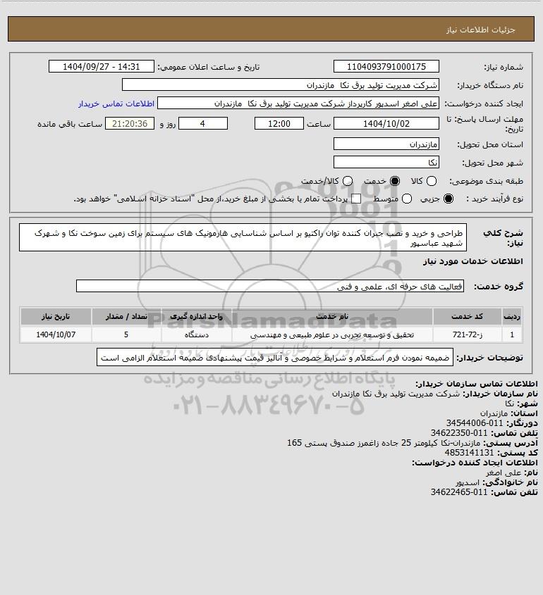 نام دستگاه خریدار:شرکت مدیریت تولید برق نکا مازندران