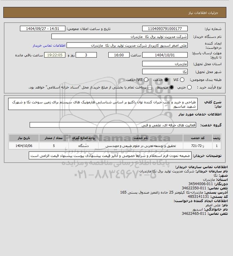 نام دستگاه خریدار:شرکت مدیریت تولید برق نکا مازندران