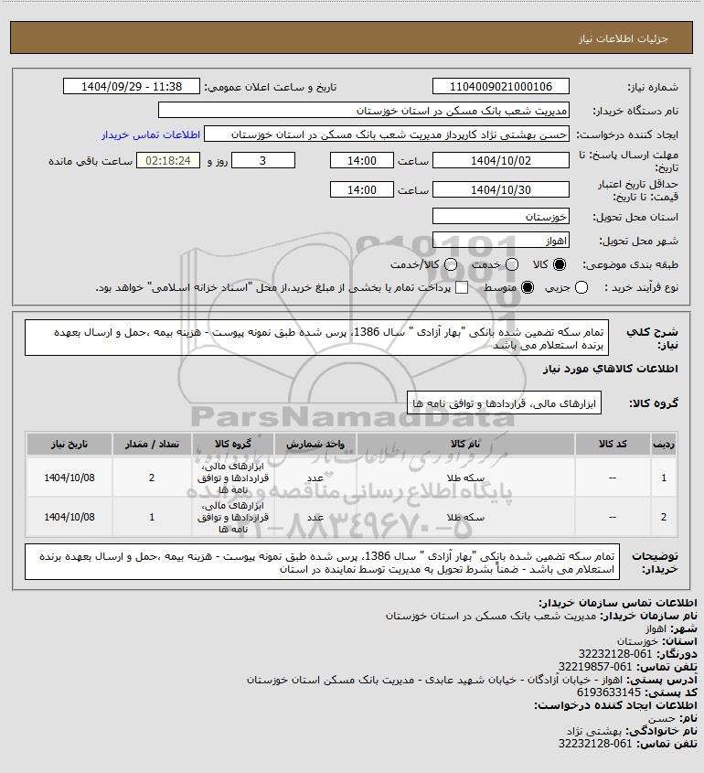 نام دستگاه خریدار:مدیریت شعب بانک مسکن در استان خوزستان