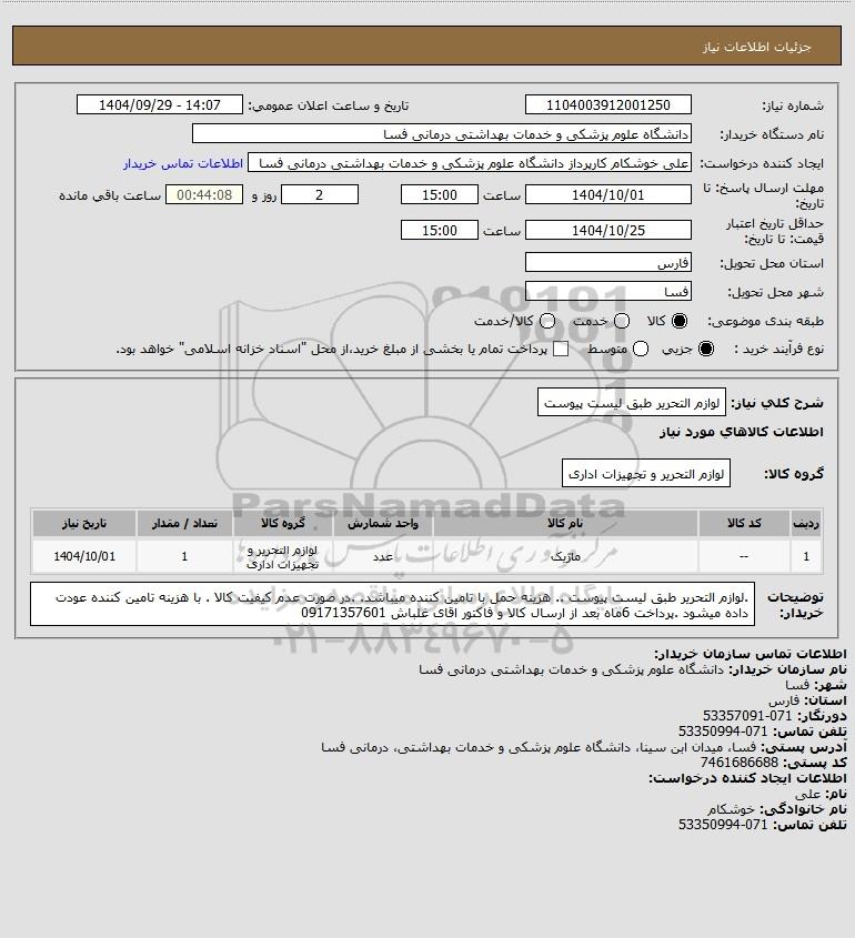 شرح کلی نیاز: لوازم التحریر طبق لیست پیوست
