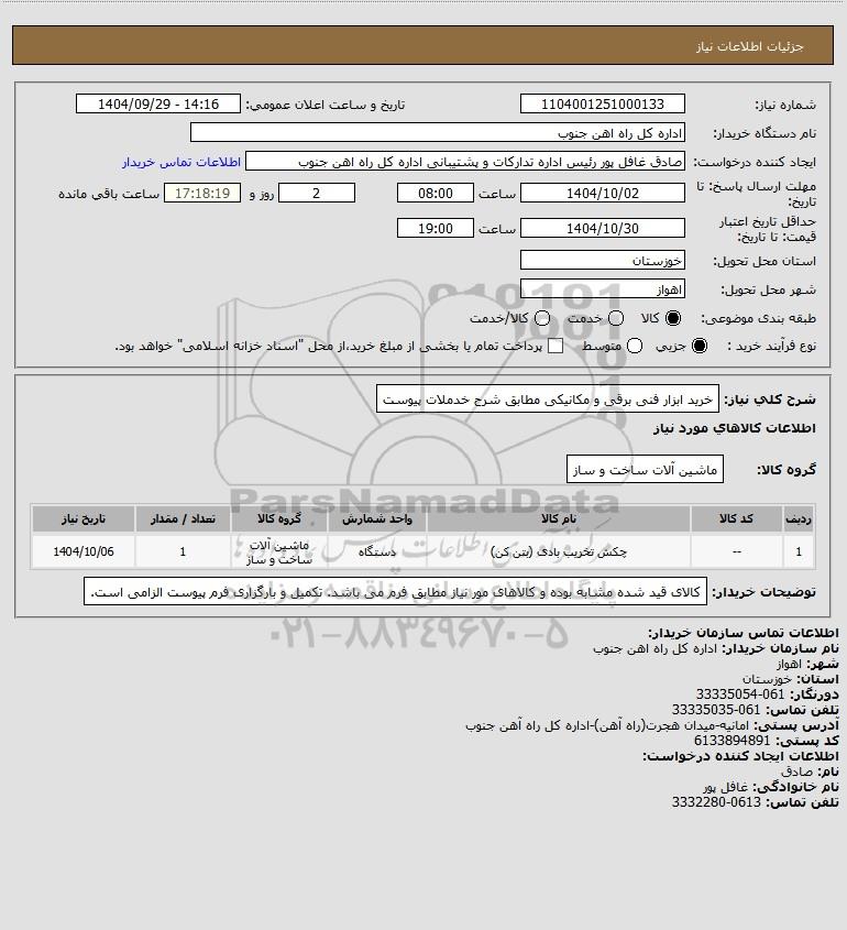 نام دستگاه خریدار:اداره کل راه اهن جنوب