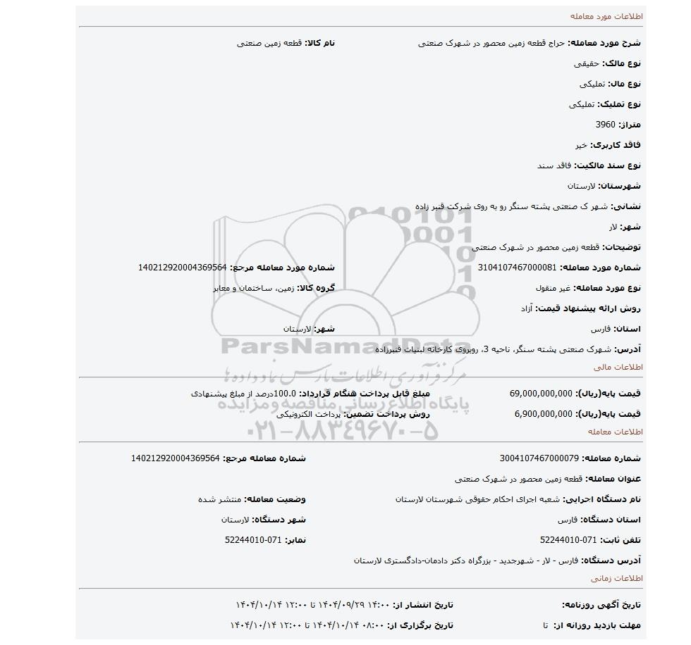 | شماره مورد معامله: 3104107467000081 | شماره مورد معامله مرجع: 140212920004369564 | |
