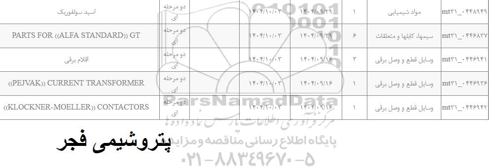 | mt31-0448949 | مواد شیمیایی | 1 | 1404.10.3 | دو مرحله ای | اسید سولفوریک |