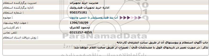 اداره برگزارکننده استعلام:     اداره خرید تجهیزات هیدرولیک