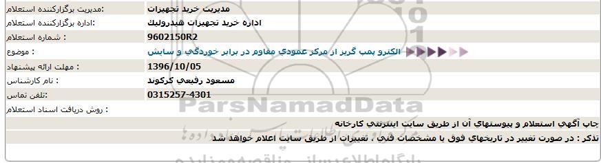اداره برگزارکننده استعلام: اداره خرید تجهیزات هیدرولیک