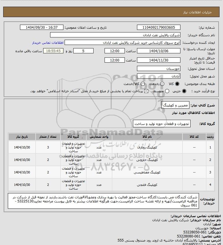 1 -- کوپلینگ روتاری عدد تجهیزات و قطعات حوزه تولید و ساخت 3 1404/10/30