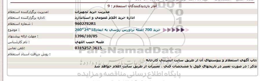 اداره برگزارکننده استعلام:     اداره خرید اقلام عمومی و استاندارد