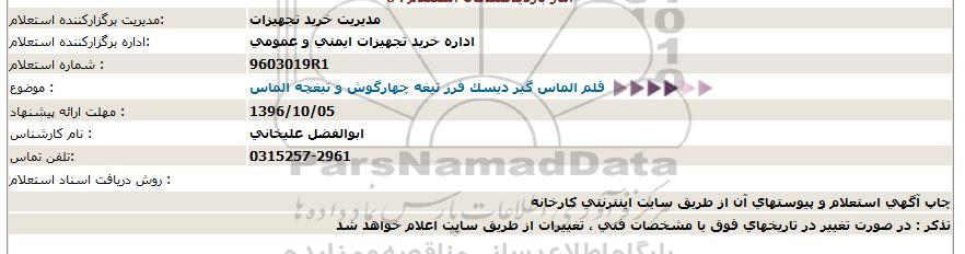 اداره برگزارکننده استعلام: اداره خرید تجهیزات ایمنی و عمومی