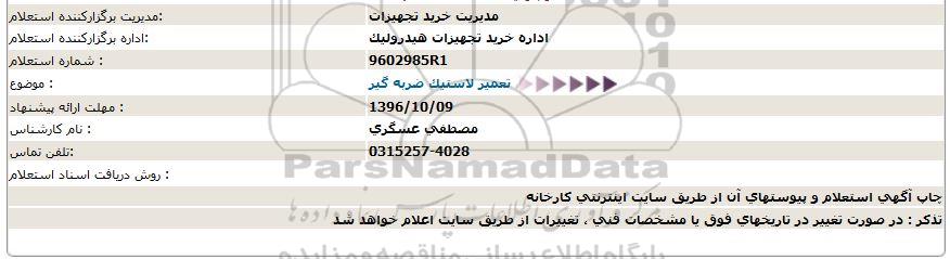 اداره برگزارکننده استعلام: اداره خرید تجهیزات هیدرولیک