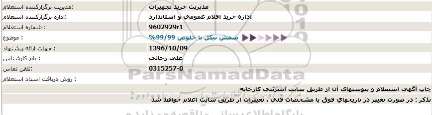 اداره برگزارکننده استعلام: اداره خرید اقلام عمومی و استاندارد