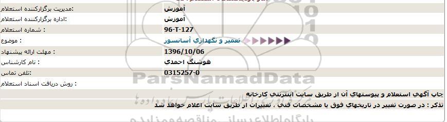 موضوع : تعمیر و نگهداری آسانسور