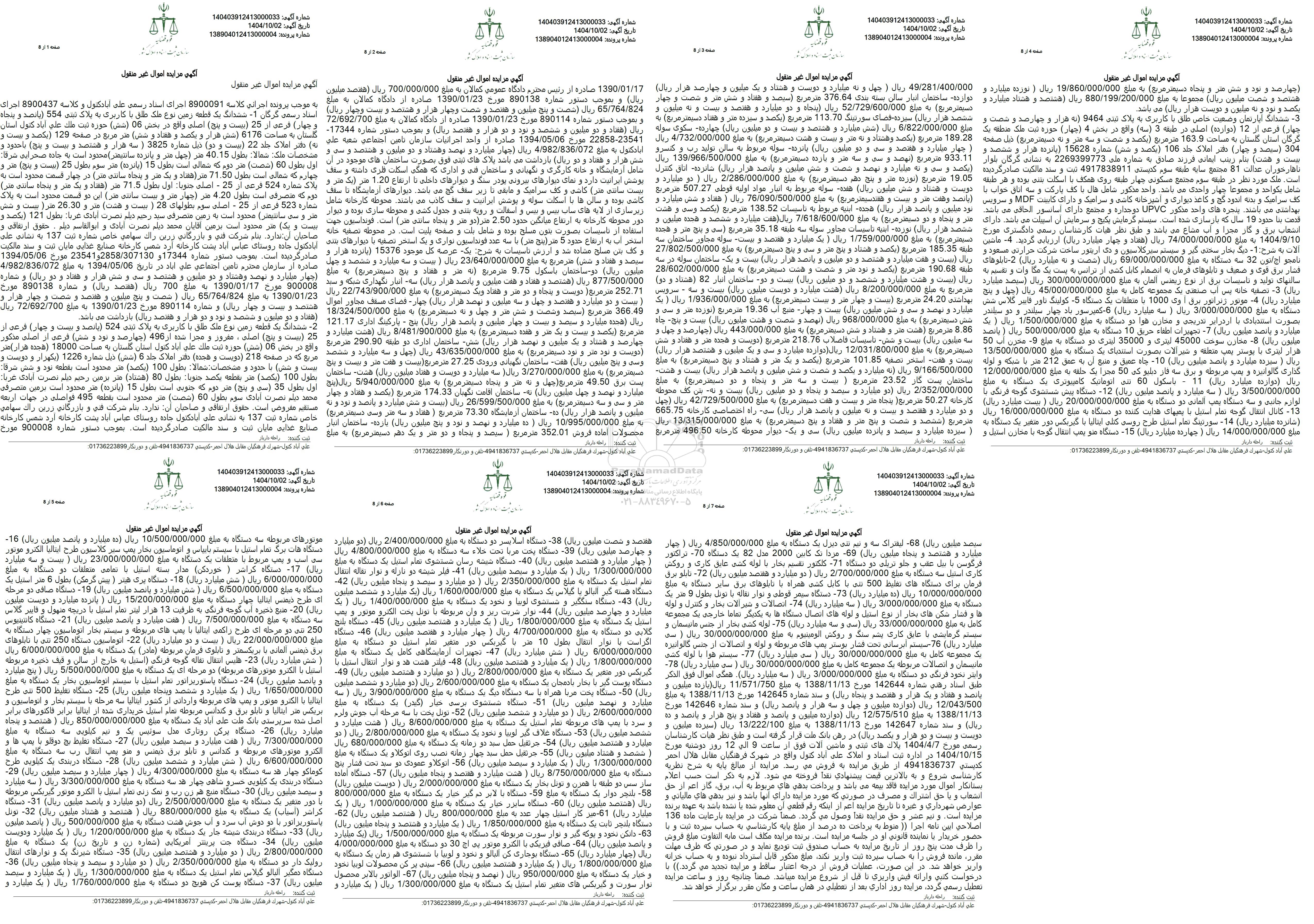 تاریخ مزایده ساعت 9 الی 12 روز دوشنبه مورخ 1404.10.15 در اداره ثبت اسناد و املاک علی آباد کتول