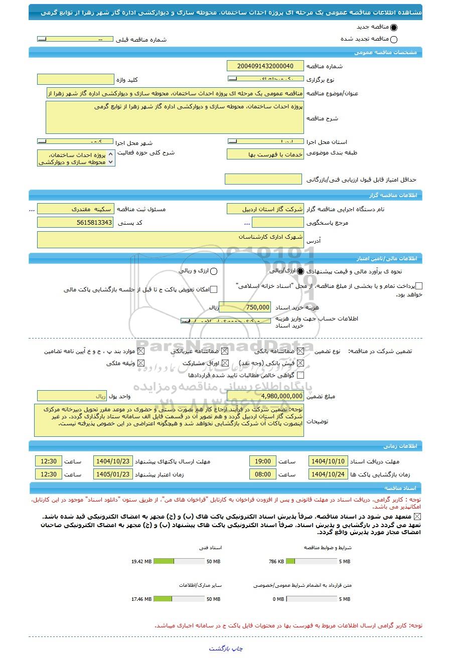 مناقصه مناقصه عمومی یک مرحله ای پروژه احداث ساختمان محوطه سازی و دیوارکشی اداره گاز شهر زهرا از توابع گرمی, مناقصه، مناقصه عمومی یک مرحله ای پروژه احداث ساختمان، محوطه سازی و دیوارکشی اداره گاز شهر زهرا از توابع گرمی