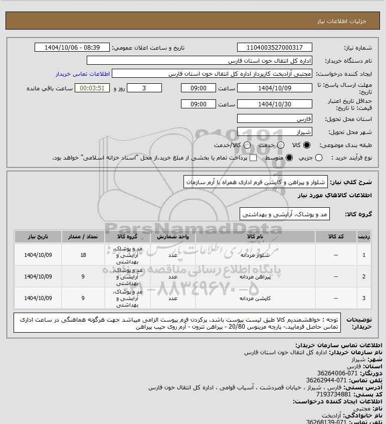 استعلام شلوار و پیراهن و کاپشن فرم اداری همراه با آرم سازمان, استعلام شلوار و پیراهن و کاپشن فرم اداری همراه با آرم سازمان