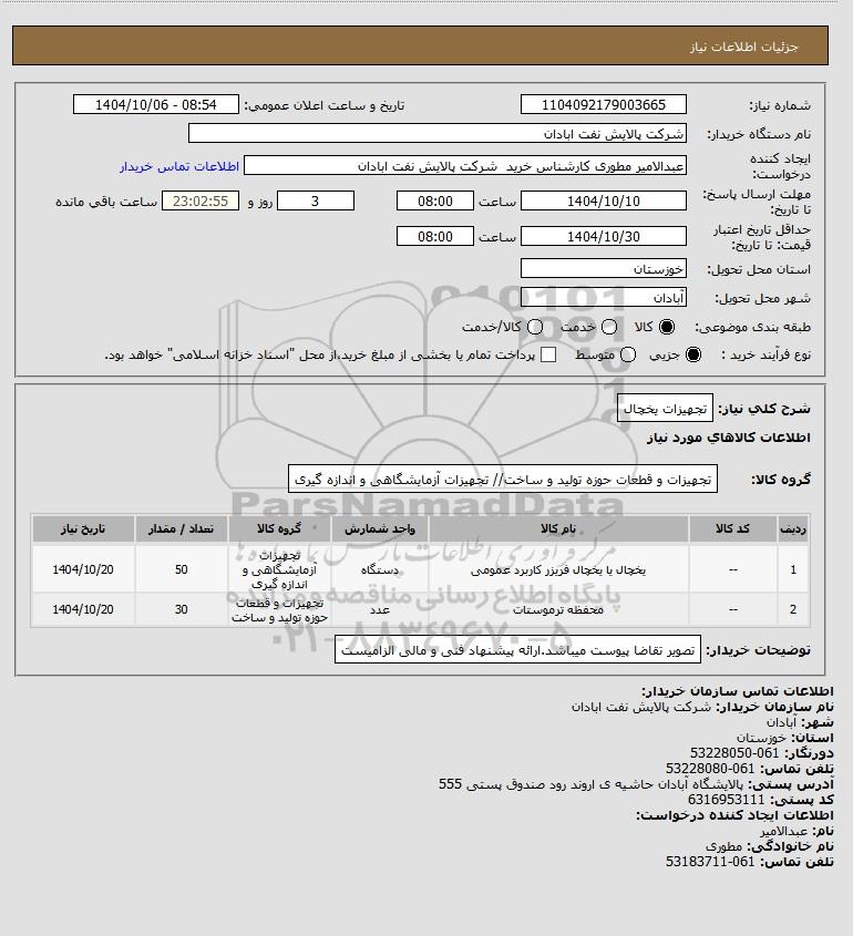 نام دستگاه خریدار:شرکت پالایش نفت ابادان