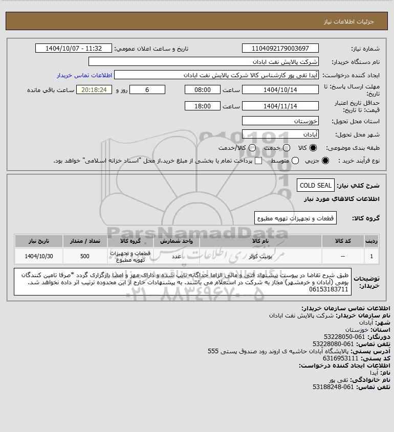 نام سازمان خریدار: شرکت پالایش نفت ابادان