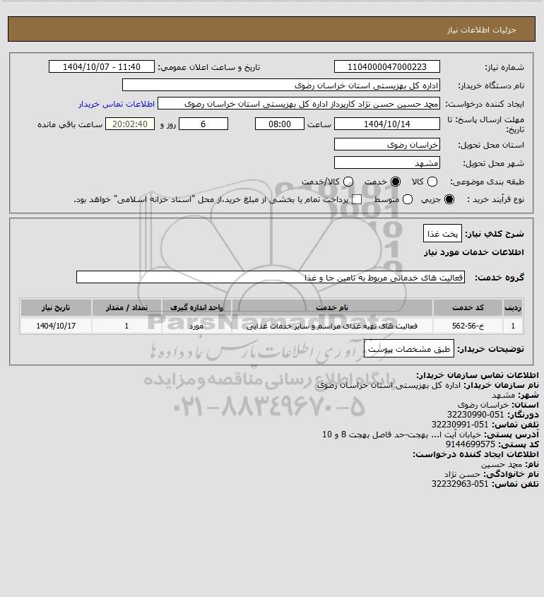 نام دستگاه خریدار:اداره کل بهزیستی استان خراسان رضوی