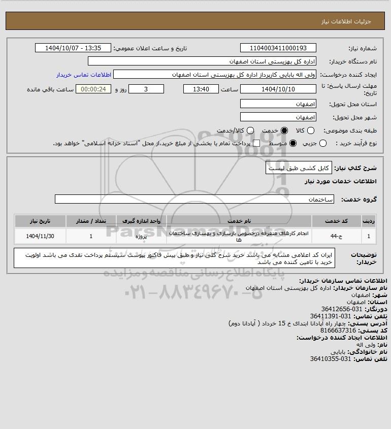 شرح کلی نیاز: کابل کشی طبق لیست