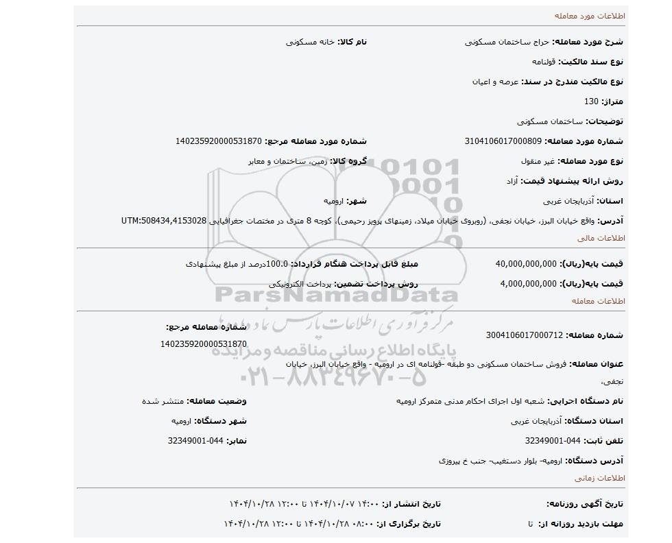 | شماره معامله: 3004106017000712 | شماره معامله مرجع: 140235920000531870 | |