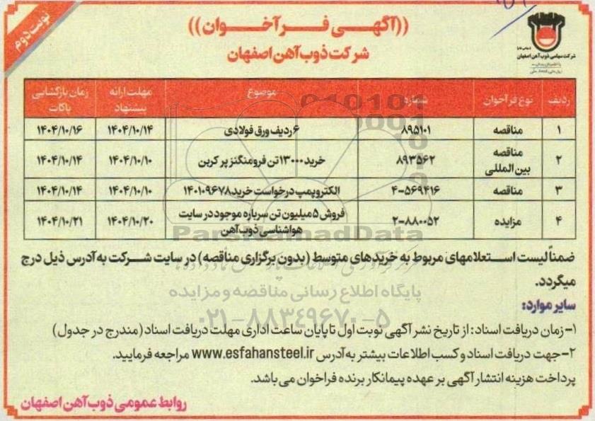 آگهی فراخوان شرکت ذوب آهن اصفهان ؟ نوبت دوم