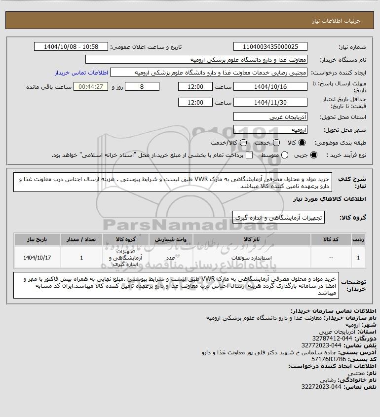 نام دستگاه خریدار:معاونت غذا و دارو دانشگاه علوم پزشکی ارومیه